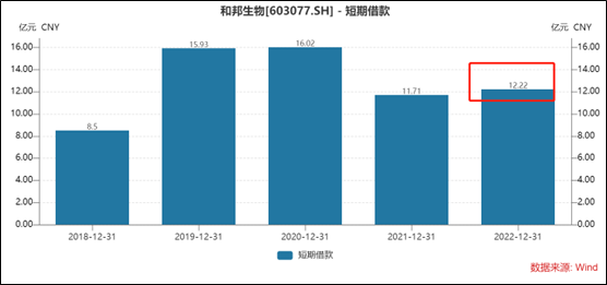 公司资金收益率低下的情况下,公司的有息债务却不少。数据显示,截止2022年年末,公司的有息负债超16亿元,其中主要以短期债务为主。值得注意的是,公司的有息债务利息成本远大于公司的货币资金收益率。据悉,和邦生物的短期借款利率在 4.35%-7.00%之间,长期借款利率 4.35%-5.23%。