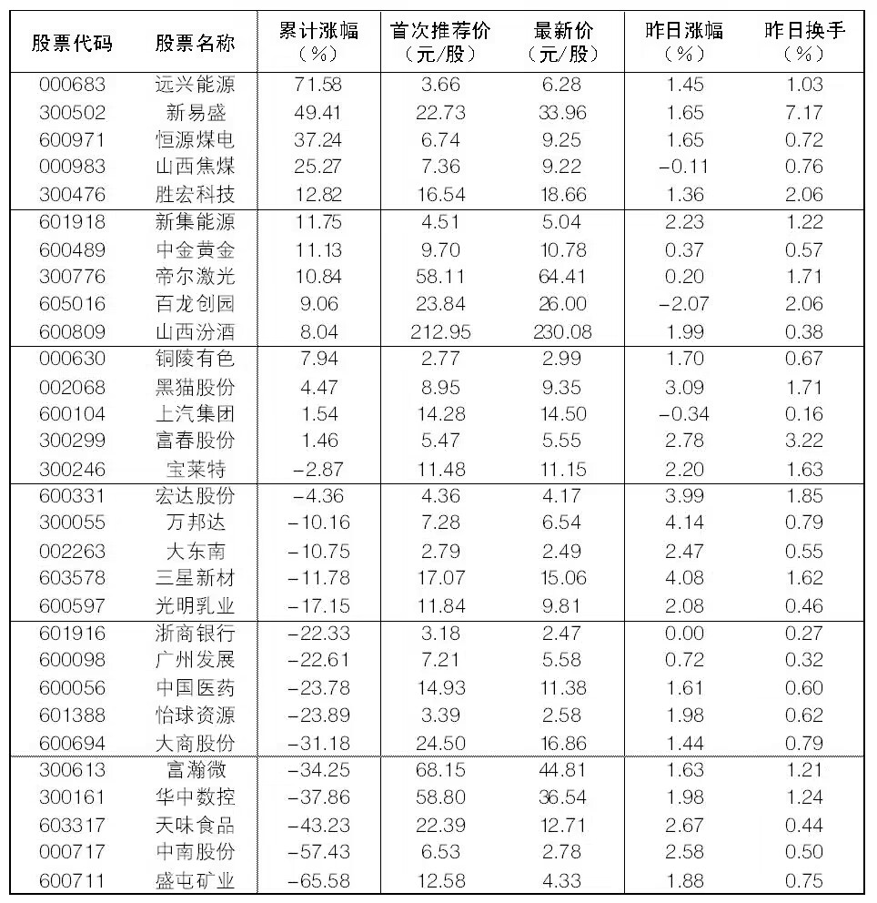 “大众30”成份股每日报告