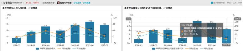 业绩方面,在经历了今年上半年回暖后, 甘李药业 在第三季度出现了营收利润环比双降。