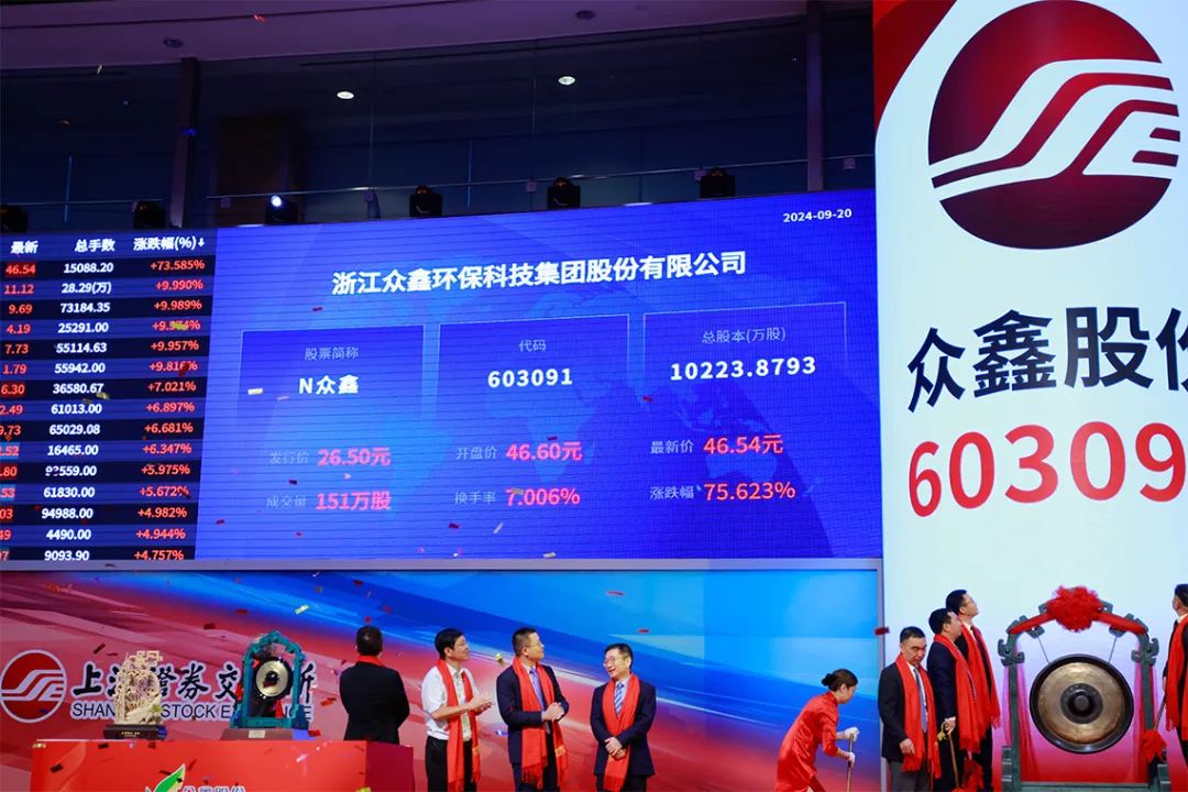 浙江众鑫环保科技集团股份有限公司(简称:“众鑫股份”,股票代码为:“603091”)今日在上交所主板上市。