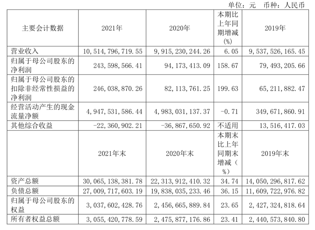 南华期货在年报中表示,2021年公司紧密围绕监管要求,坚持既定的发展战略,强化协同,充分发挥业务资源整合优势,大力开发机构客户和产业客户,加强客户粘性,推动公司各项业务规模的稳健增长,整体盈利能力较2020年有较大的提升。共实现营业收入105.15亿元,同比上升6.05%;归属于上市公司股东的净利润为2.44亿元,同比上升158.67%。