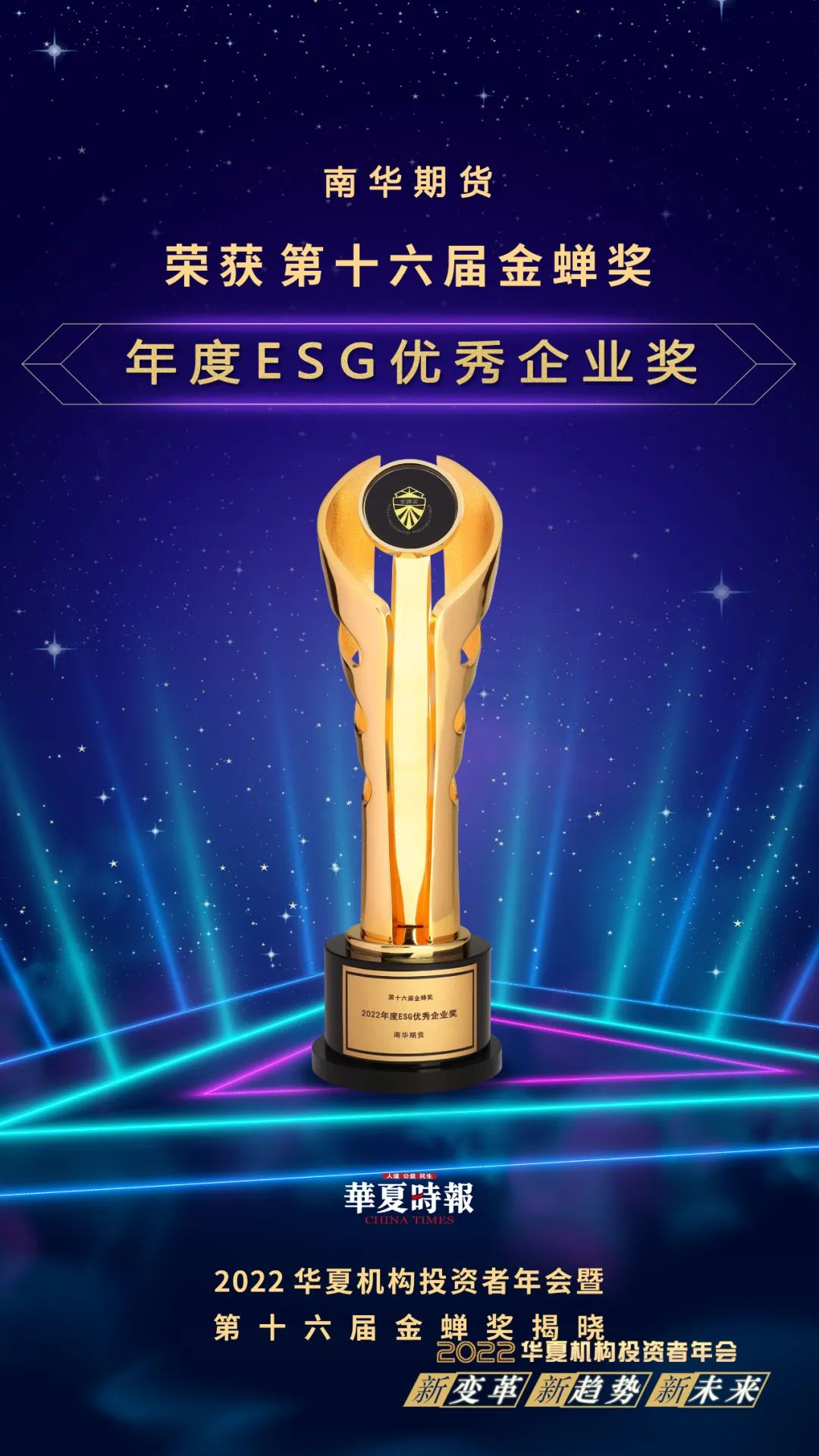 1月6日,由华夏时报主办的华夏机构投资者年会暨第十六届“金蝉奖”颁奖盛典在北京隆重举行。南华期货凭借多年来在ESG方面的积极探索与实践,从众多参选企业中脱颖而出,荣获“年度ESG优秀企业奖”。