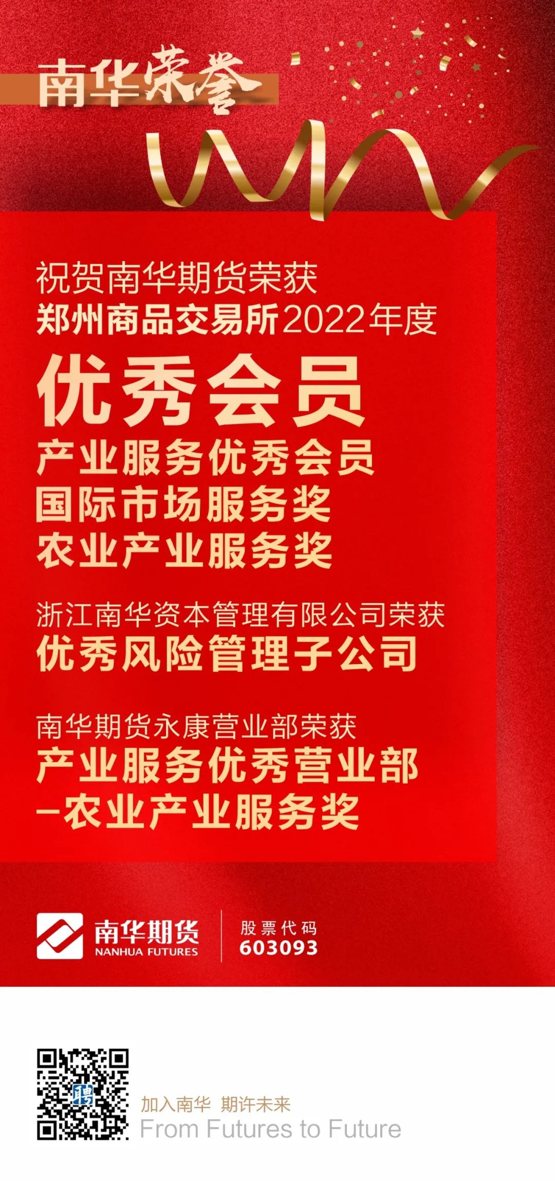 南华期货荣获郑商所2022年度优秀会员等六项大奖
