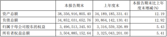 报告期末,南华期货资产总额383.57亿元,比上年度末增长12.19%;负债总额348.52亿元,比上年度末增长12.92%。