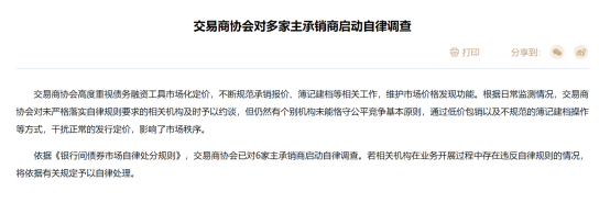 依据《银行间债券市场自律处分规则》,交易商协会已对6家主承销商启动自律调查。