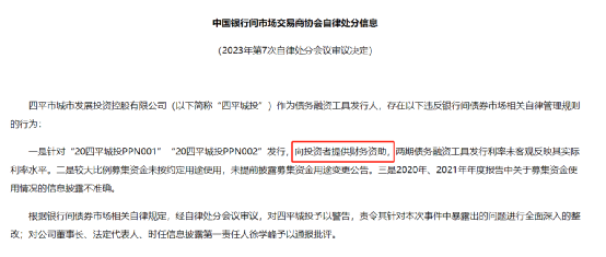 而在2023年3月24日,银行间市场交易商协会发布对四平市城市发展投资控股有限公司自律处分信息: