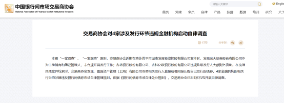 2023年4月3日,根据交易商协会官方网站,交易商协会对4家涉及发行环节违规金融机构启动自律调查。