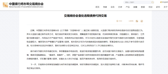 早在2023年5月份,交易商协会就针对大连银行等机构的债券代持行为进行自律处分。
