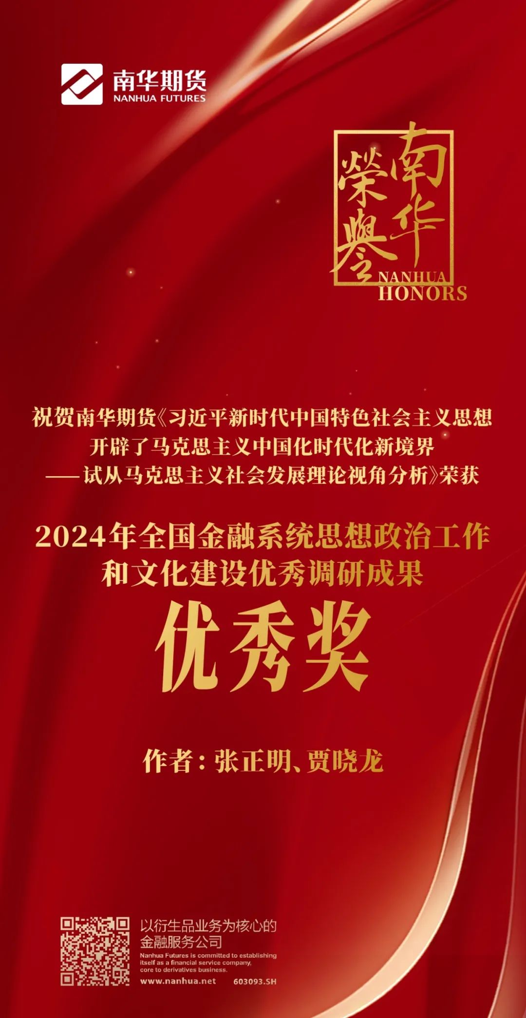 南华期货荣获2024年全国金融系统思想政治工作和文化建设优秀奖