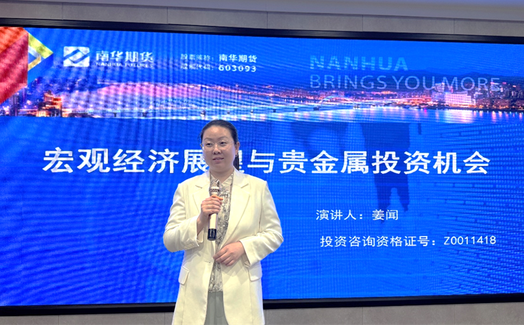 报告会上,南华期货哈尔滨营业部市场总监姜闻就《宏观经济展望与贵金属投资机会》展开分享,她表示在当前宏观经济背景下,黄金的投资价值显著提升,地缘政治风险、通胀预期、央行购金等因素共同推动黄金价格上行。尽管黄金短期存在回调风险,但中长期来看,黄金有望进入“超级周期”。