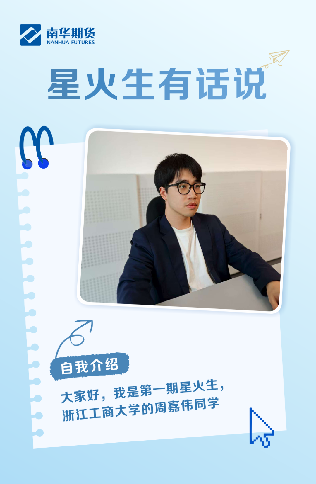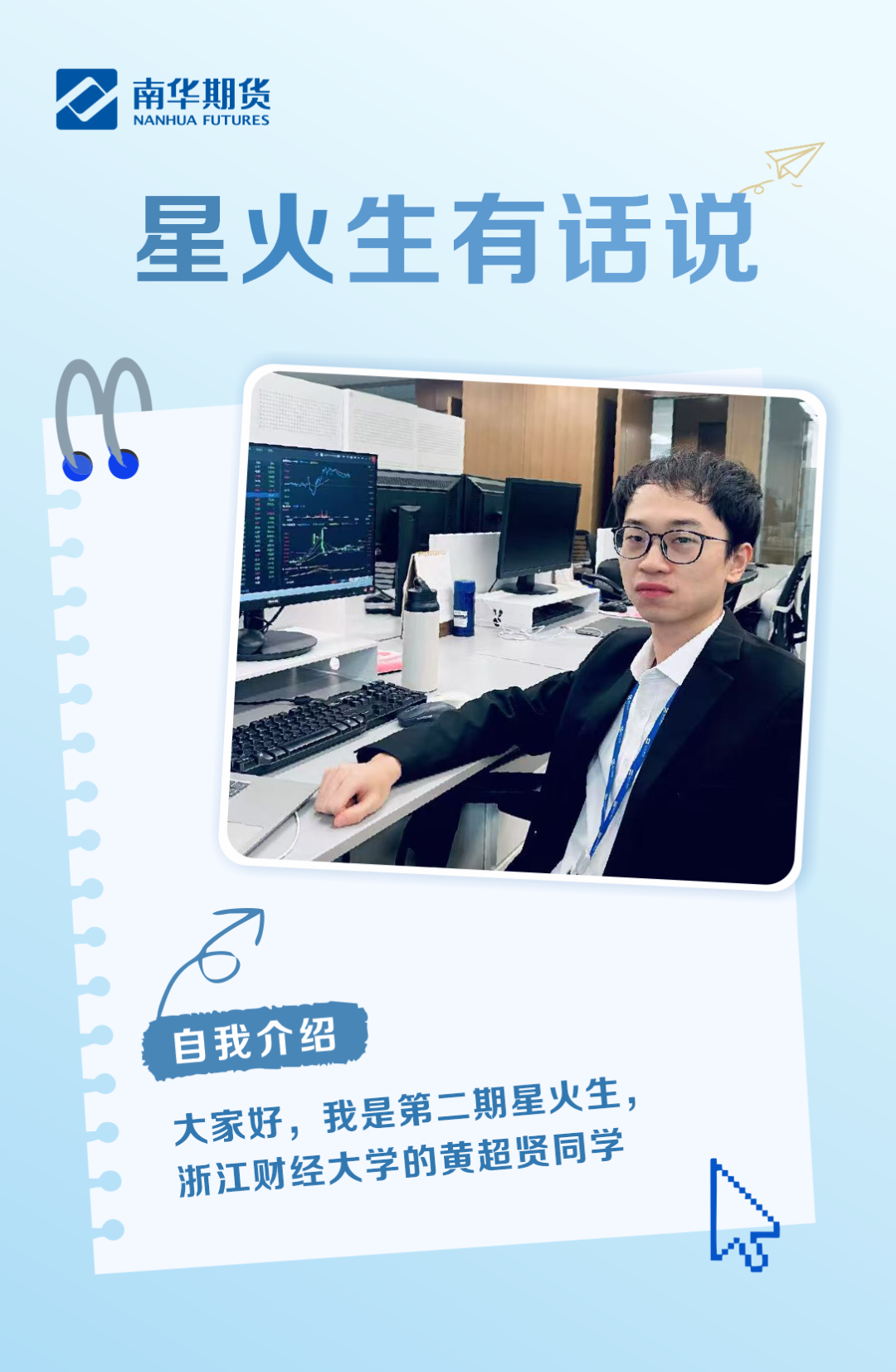 若从暑期实习算起,来到南华已经满一年了,但去年在星火班学习的片段依然历历在目。依稀记得去年夏天参与面试笔试,参与训练营破冰游戏,结识了一帮来自五湖四海又志同道合的伙伴,一起上课、工作、聚餐。作为非金融专业的应届生,很幸运能获得公司这一宝贵学习培训的机会,也十分感谢来自各个部门的领导、老师们百忙中不吝赐教。我在近一个月的课程中系统地学习了关于大宗商品、期权期货等衍生品知识,深入窥探各个产业中的细节;也了解公司各个部门、子公司的发展历程与业务内容。结合领导与前辈的职业规划分享,我得以更好地了解自身,选择后续的实习方向并进行长远规划。最终,我选择来到咱们南华研究院实习,实习过程丰富饱满且有趣。实习时长接近一年的时间,先后接触了黑色、有色、化工等产业,逐步学习产业链的分析方法、搭建自己的研究逻辑框架、提高衍生品工具的了解与运用能力等等。在这里,领导与同事都是良师益友,大家分工协作又一起交流学习。我作为新人,可谓是受益匪浅但又学无止境。如今,我完成从学生到职业的转变,很荣幸正式加入南华,成为一名大宗商品研究员。对衍生品、行业知识和研究方法等的不断学习是目前工作的主基调,向前辈请教学习是工作的日常,目标则是能独立负责品种的研究、内容输出与客户服务。若谈值得与星火班的新朋友们分享的个人感想:保持学习的惯性,从事喜欢的事情,自然会有持续的动力。
