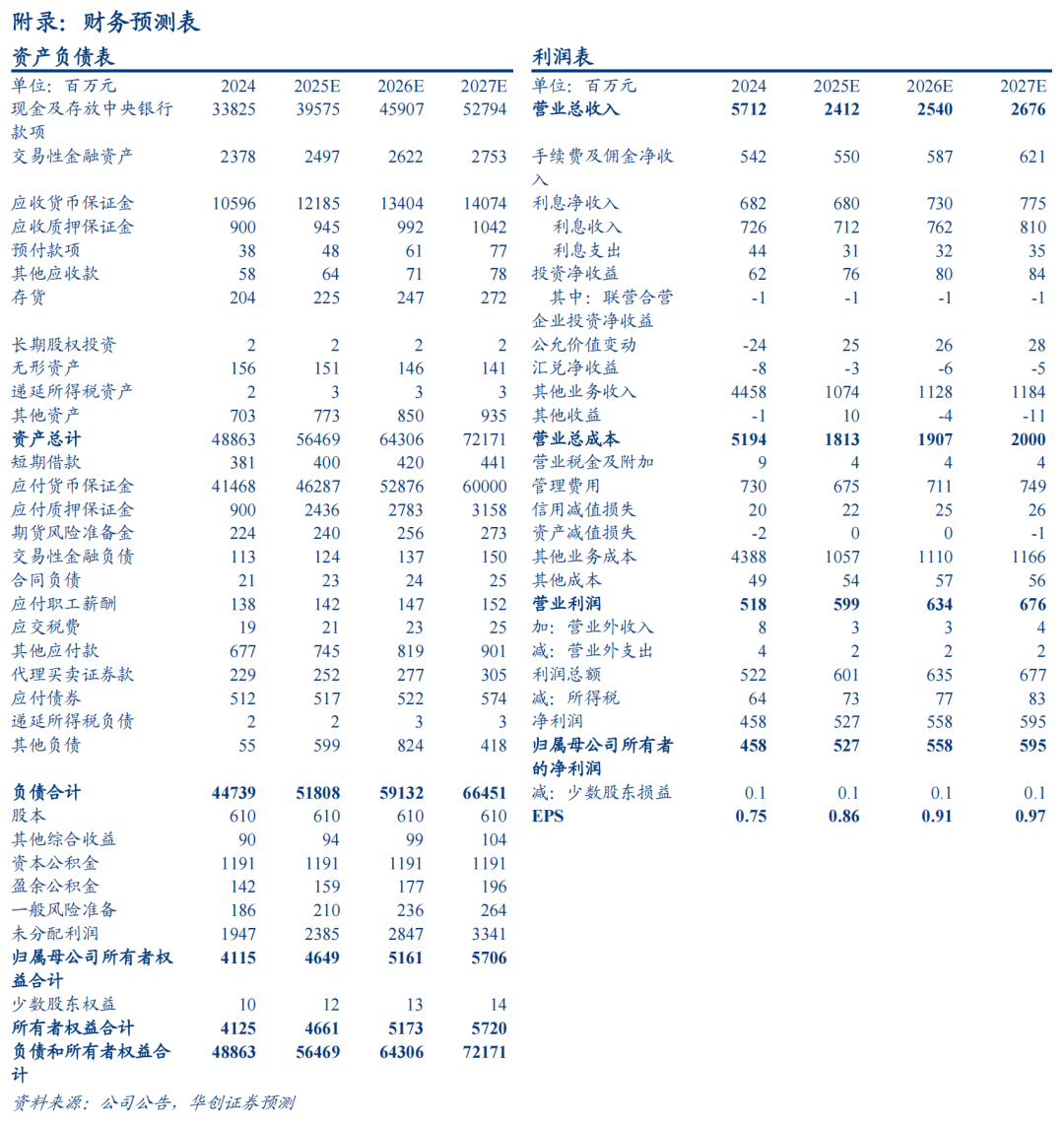 收入拆分:合并口径利息及手续费净收入均有所下滑。报告期内公司实现利息净收入/手续费及佣金净收入/投资净收益+公允价值变动净损益/其他业务收入(主要是基差贸易收入)分别为 2.5、2.3、0.8、5.2 亿元,同比分别-27.8%、-13.9%、+570.7%、-73.7%。其他业务收入大幅下滑,主因 2025 年起确认准则调整,若干交易业务采用净额法确认收入,但该项变动对公司净利润不产生影响。
