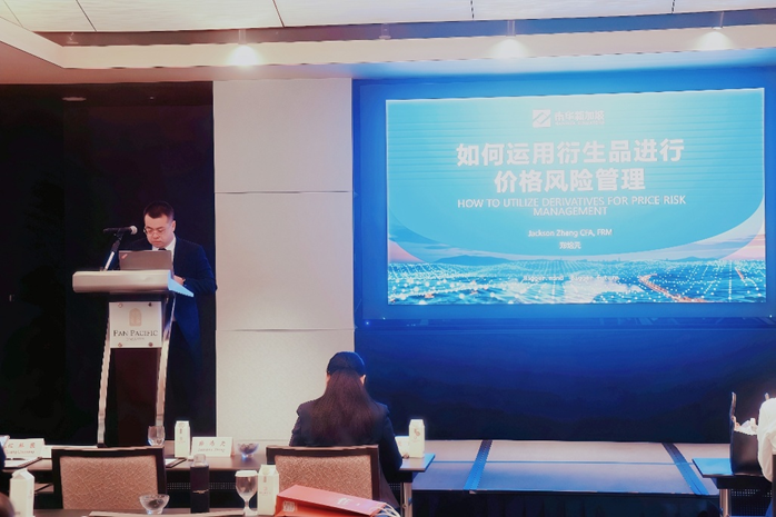 本次油气大会分为天然气、成品油与LPG三个专场。南华新加坡首席执行官、新加坡中资证券期货业协会副会长郑培元出席大会,他以丰富的国际市场经验和深厚的衍生品专业知识,深入浅出地介绍了能源企业如何利用油品衍生品工具稳定价格,服务企业生产经营和稳健发展。