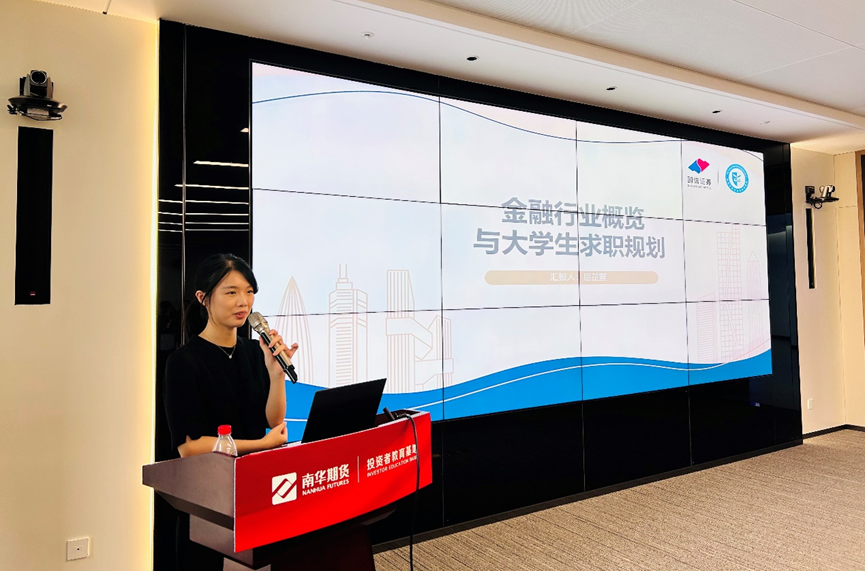 国信证券投教基地屈芷萱为在场学生带来了题为“金融行业概览与大学生求职规划”的专题讲座。她系统梳理了金融行业的现状与发展趋势,并针对学生们关心的职业发展问题,从能力储备、方向选择与求职技巧等方面提供了务实建议,为学子们明晰职业规划提供了专业指引。