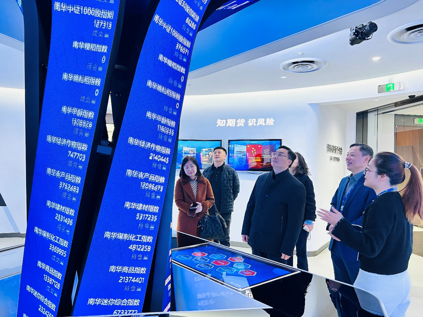 南京财经大学领导一行参观了南华期货总部大楼及投资者教育基地。大楼现代化的办公空间与融合其中的艺术陈设相得益彰,基地内科技感强、交互智能的展陈形式与充实的教育内容,给参观者留下了深刻印象。