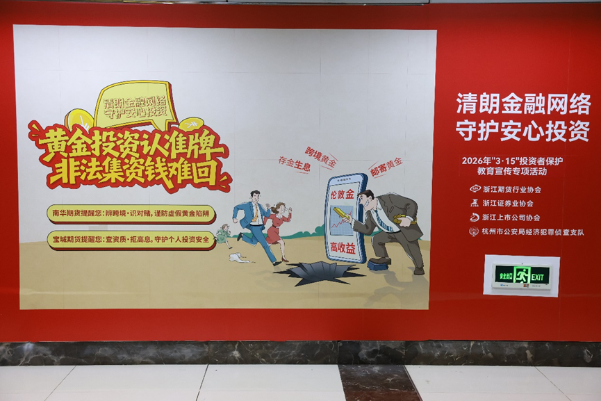 防非主题地铁站创新采用沉浸式宣教模式,将站内走廊打造为立体化警示教育空间,以生动漫画解析“非法期货”陷阱,以温馨提示传递防骗指南。站内设有“黄金投资认准牌非法集资钱难回——南华期货提醒您:辨跨境·识对赌,谨防虚假黄金陷阱”等主题宣传语,进一步强化投资者警示。依托市民5分钟通勤场景,将防非理念融入日常出行,让警示教育在潜移默化中深入人心,形成场景化、常态化的宣教新模式。