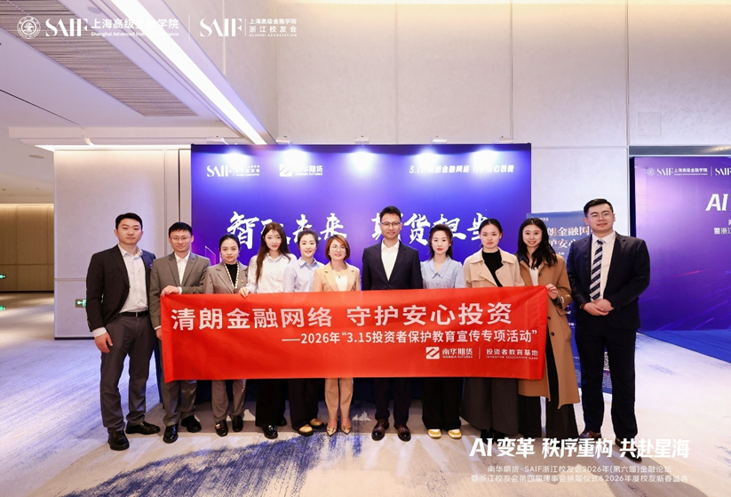 3月14日,“AI变革、秩序重构、共赴星海”——南华期货·SAIF浙江校友会2026年金融论坛暨第四届理事会换届仪式及新春盛典在钱塘江畔举行。上海交通大学上海高级金融学院院方代表、教师团队,高金各兄弟校友组织负责人、全国校友代表,交通大学杭州校友会、交大安泰杭州校友会代表,以及浙江金融机构与南华期货嘉宾等近300人出席。
