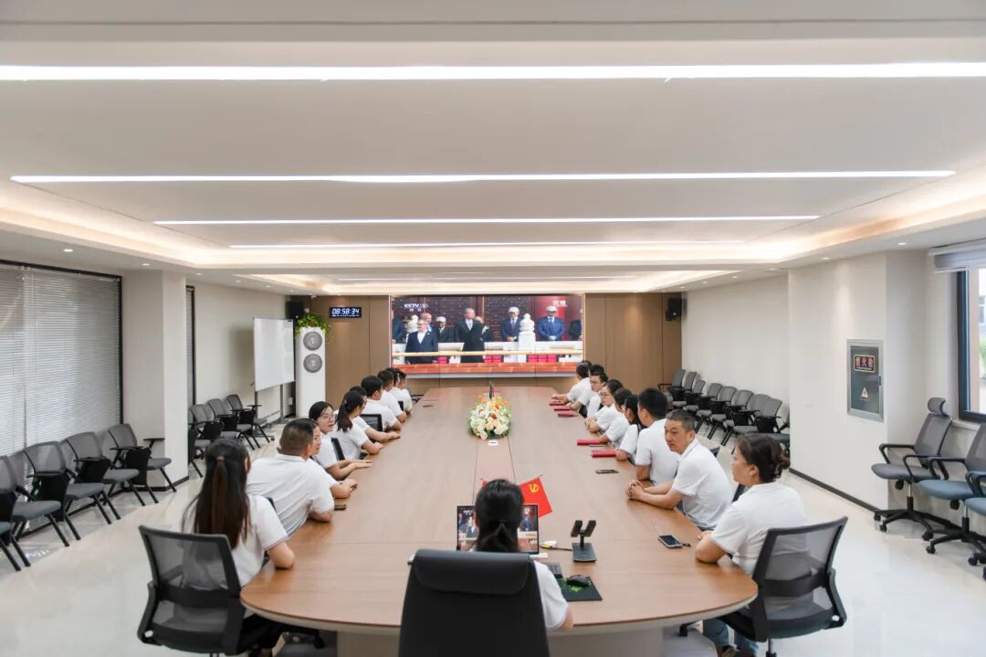 今天上午9时,纪念中国人民抗日战争暨世界反法西斯战争胜利80周年大会在北京天安门广场隆重举行。江苏华辰变压器股份有限公司组织全体党员集体观看了这场气势恢宏的阅兵仪式,共同见证这一历史性时刻。