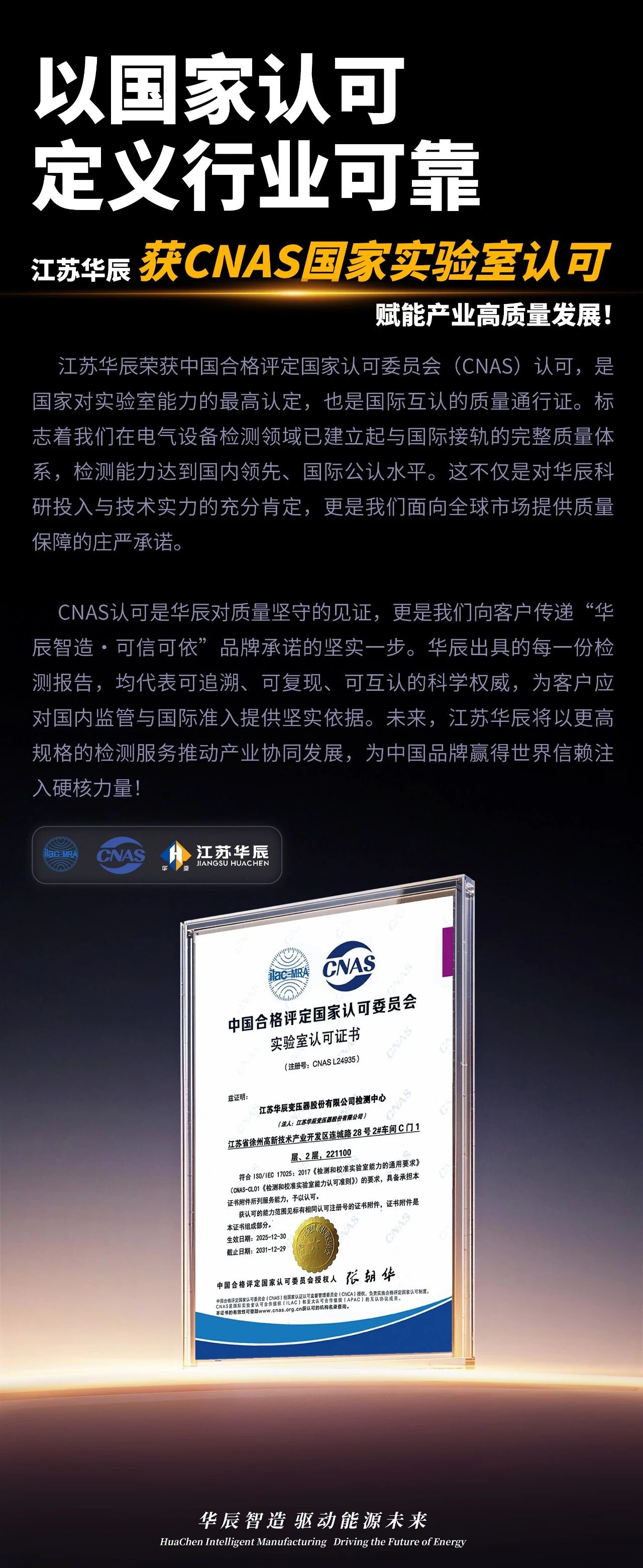 以国家认可定义行业可靠 | 江苏华辰获CNAS国家实验室认可赋能产业高质量发展!