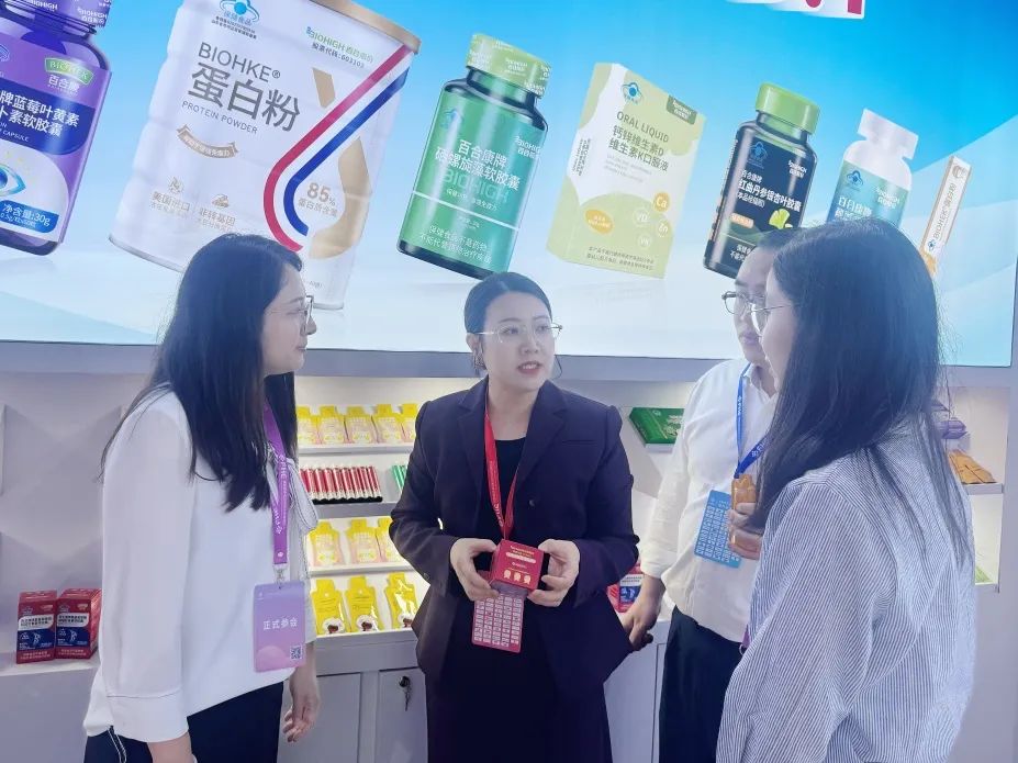 展会现场,百合股份的展位陈列多种覆盖多元人群、丰富剂型的创新化产品解决方案。