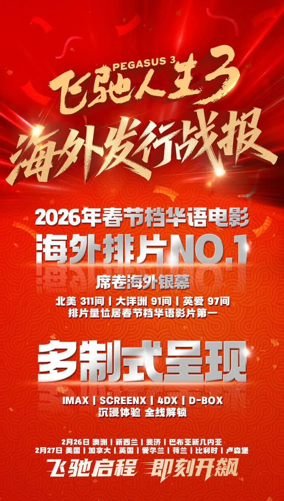 据最新发布的海外发行战报,该片以“海外排片NO.1”的强势姿态席卷国际银幕,累计在海外市场获得超过499间影院的排片支持。其中,北美地区覆盖311间影院,英国及爱尔兰地区达97间,大洋洲(澳大利亚、新西兰、斐济、巴布亚新几内亚)共91间,排片量居春节档华语影片首位。