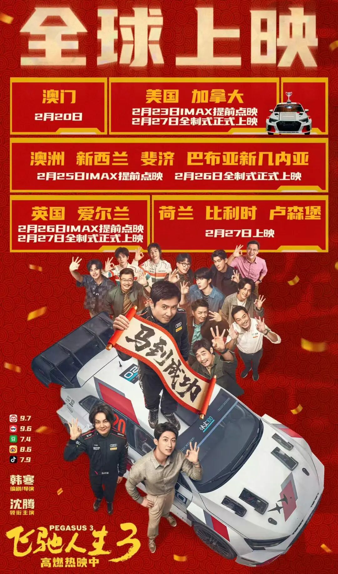 横店影视旗下浙江横店影业有限公司参与出品的电影《飞驰人生3》热潮延续至海外。凭借压倒性的排片优势,成为该档期在海外市场的领跑者。