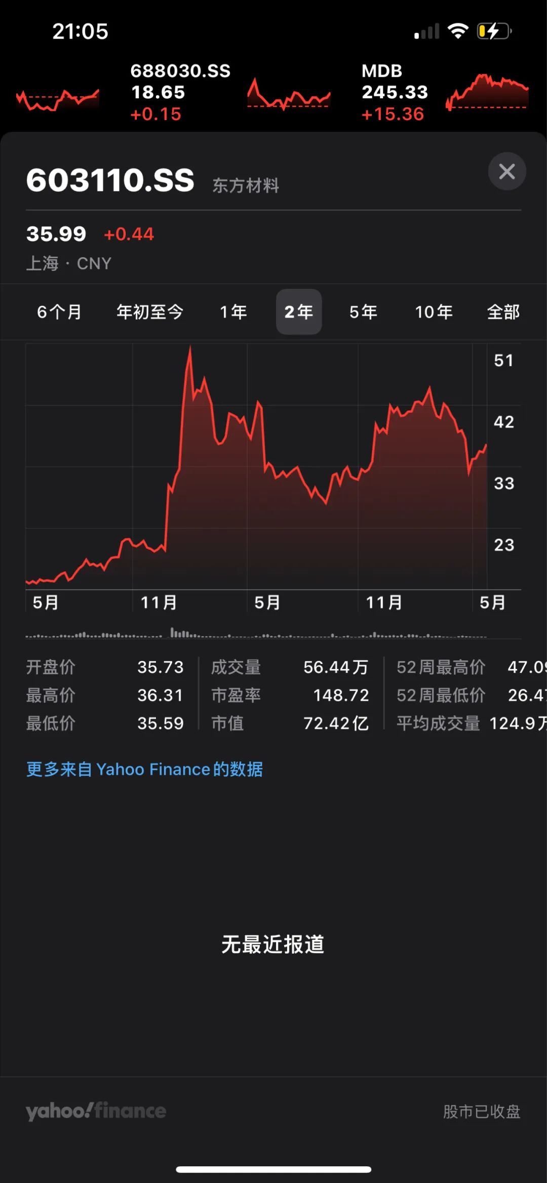 东方材料目前市值 72.42 亿元: