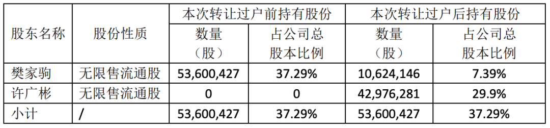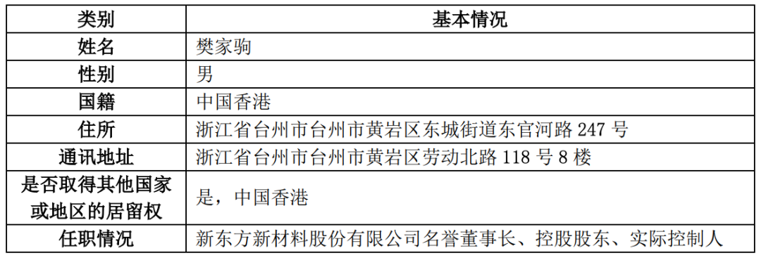 樊家驹先生与许广彬先生签署《樊家驹与许广彬关于新东方新材料股份有限公司之股份转让协议》,将其持有的公司 42,976,281 股股份,占公司总股本 29.9%,以每股 17.76 元的价格转让给许广彬先生。