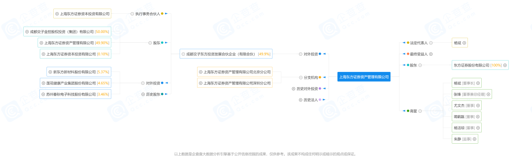 公开信息显示,交子东方成立于2020年1月。现有三家股东:成都交子金控股权投资(集团)有限公司(简称:交子金控)持股50%;上海东方证券资产管理有限公司(简称:东证资管)持股49.9%;上海东方证券资本投资有限公司(简称:东证资本)持股0.1%,东证资本同时也是交子东方的执行事务合伙人。