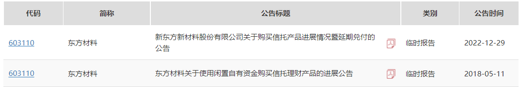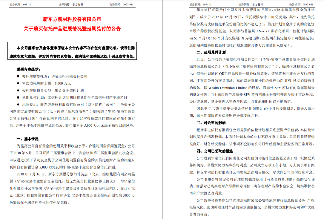 在监管罚单公布前,东方材料曾在公告中披露了一项信托理财的进展。