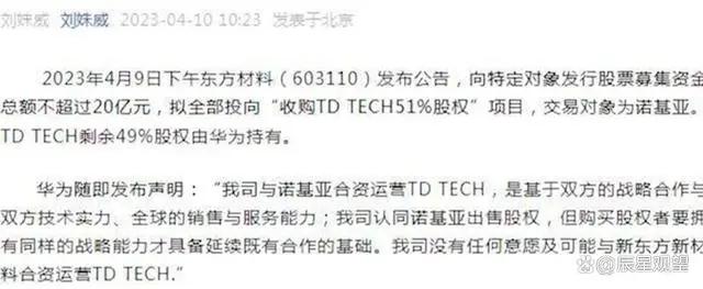 可是就是这样一个普普通通的收购方案,却遭到了华为的反对。而且华为言辞犀利,更是直言不会和东方材料合作,拒绝东方材料的收购。
