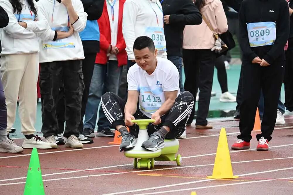 个人趣味项目同样亮点十足。“爱拼才会赢”(玩转呼啦圈)、“攻坚担使命”(滚铁环)、“奋进展活力”(快乐大脚)、“迎接新挑战”(扭扭车竞速)四大项目兼具趣味性与挑战性。康尼健儿们各显所长、全力以赴,即使遭遇小失误也不轻言放弃,赛场氛围轻松热烈又不失竞技激情。其中,康尼科技俞金华在“攻坚担使命”女子组中凭借稳定发挥勇夺冠军,再添光彩!