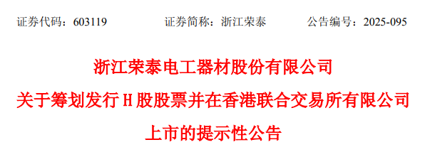 来自浙江嘉兴的A股上市公司浙江荣泰(603119.SH)发布公告称,为深化国际化战略布局,完善海外产能布局,提升公司品牌国际影响力,积极借助国际资本市场拓宽多元化融资渠道,助力公司高质量发展,经公司充分研究论证,拟发行境外上市股份(H股)股票并申请在港交所主板上市。