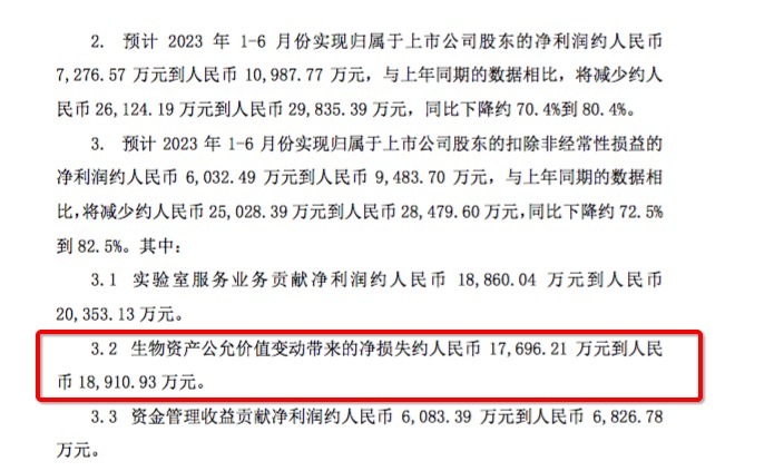 但市场似乎更关注另外一点:“本报告期内公司持有的生物资产因市价下跌,公允价值变动损失对业绩产生了消极影响。”半年报预测指出,“生物资产公允价值变动带来的净损失约人民币1.77亿元到人民币1.89亿元”。