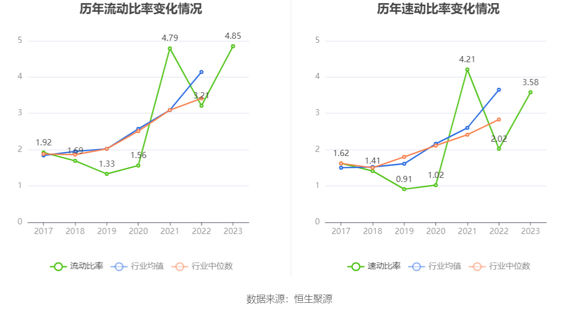 2023年,公司流动比率为4.85,速动比率为3.58。