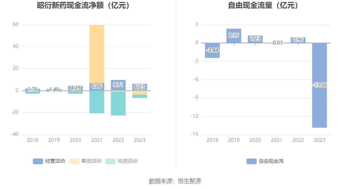 进一步统计发现,2023年公司自由现金流为-13.88亿元,上年同期为0.96亿元。