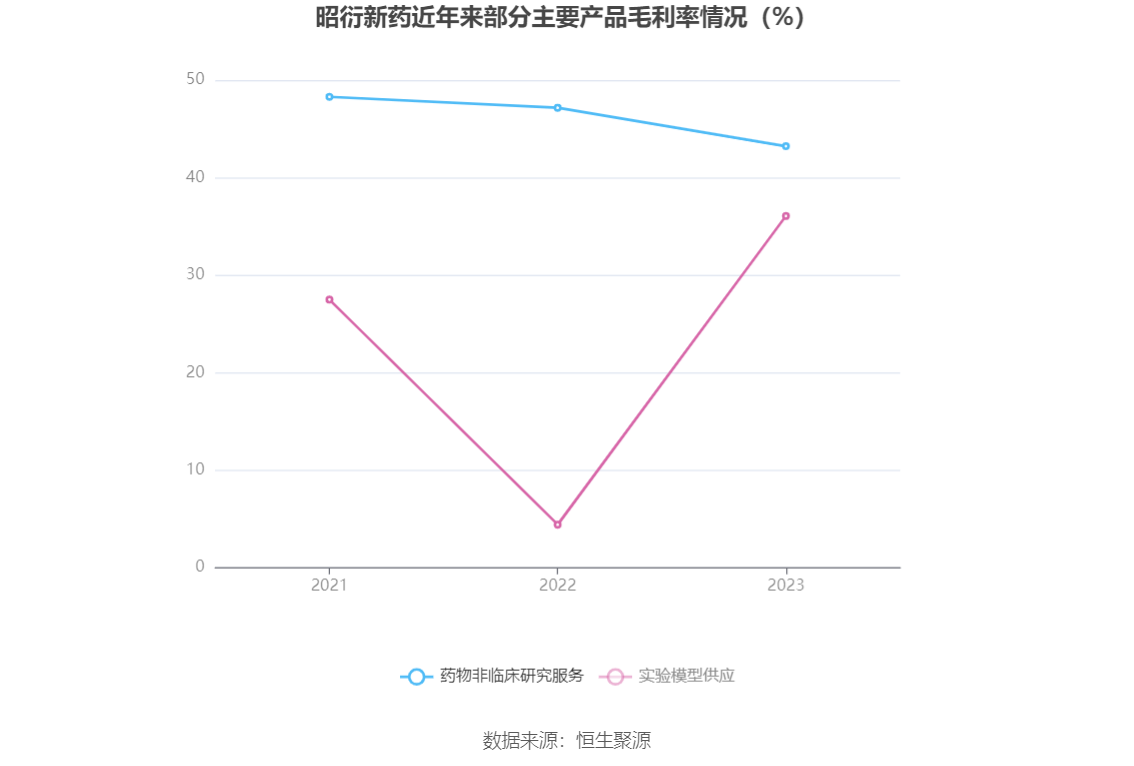 分产品看,药物非临床研究服务、实验模型供应2023年毛利率分别为43.22%、36.06%。