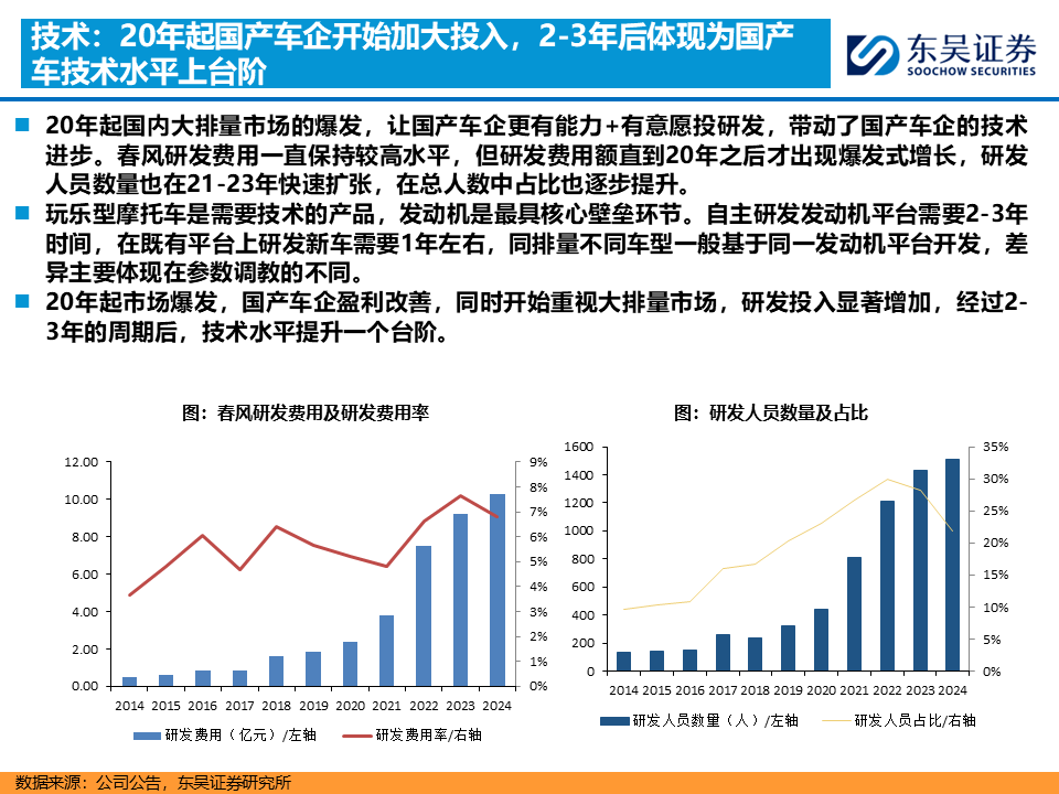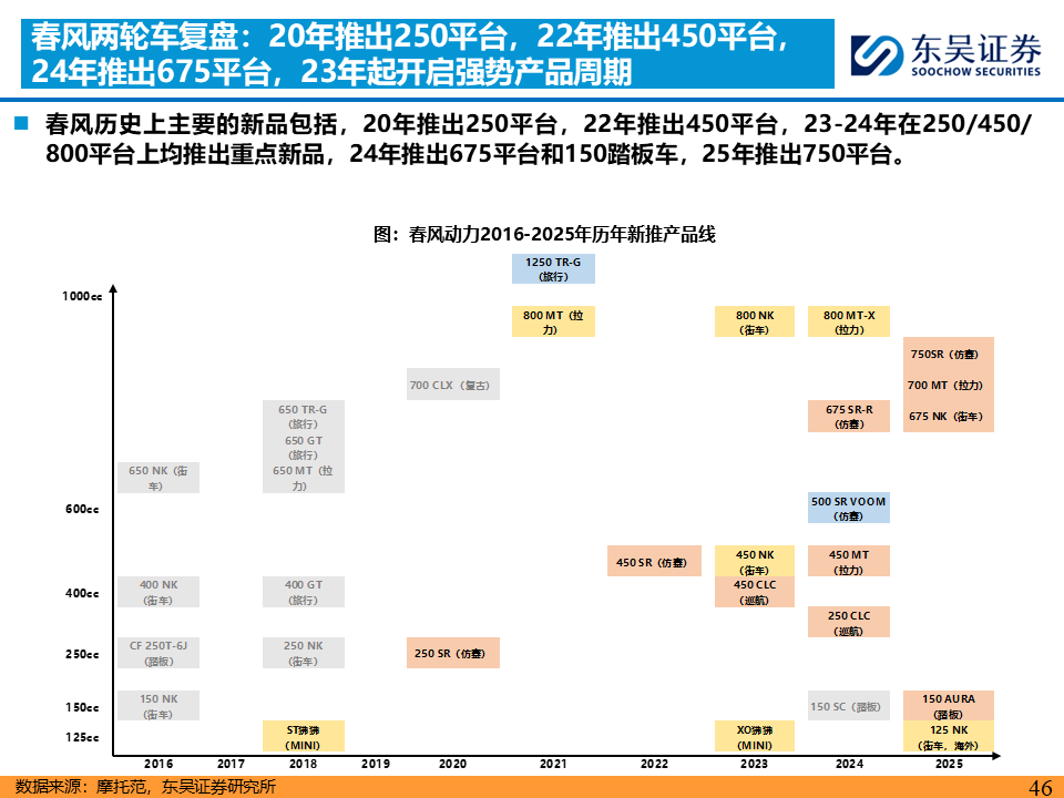 250-450-675-750的平台升级,体现过去4年春风的技术水平有本质提升,20-22年为春风研发扩张期,在2-3年的平台研发周期后兑现为产品力的提升。