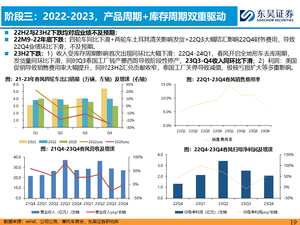 2023年春风美国开启去库周期,全年四轮车销量及收入下滑,期间叠加国内摩托车行业量价齐跌,春风市值也跌至低位,PE一度下跌至12倍。