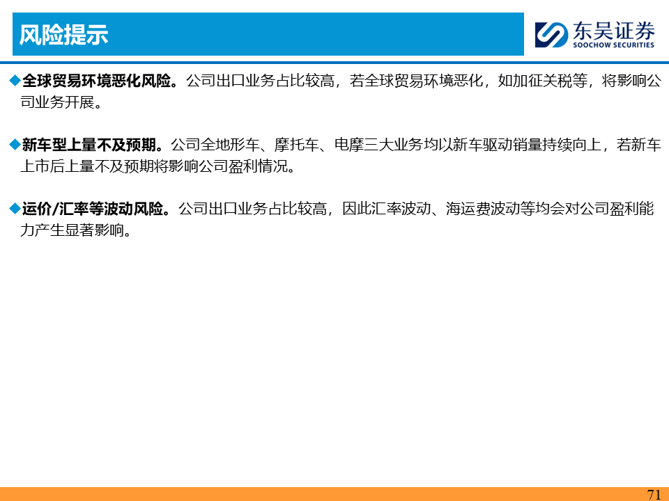 全球贸易环境恶化;新车型上量不及预期风险;运价/汇率等波动风险等。