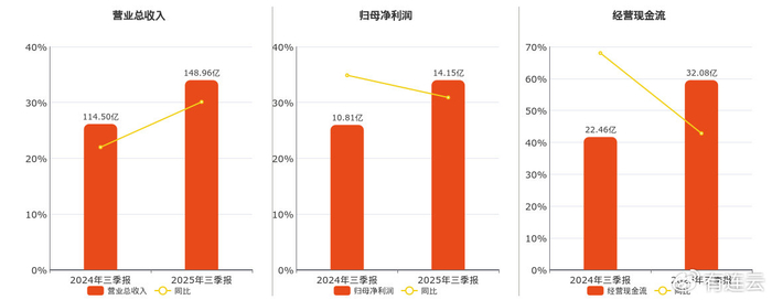 公司营业总收入为148.96亿元。归母净利润为14.15亿元。经营活动现金净流入为32.08亿元。