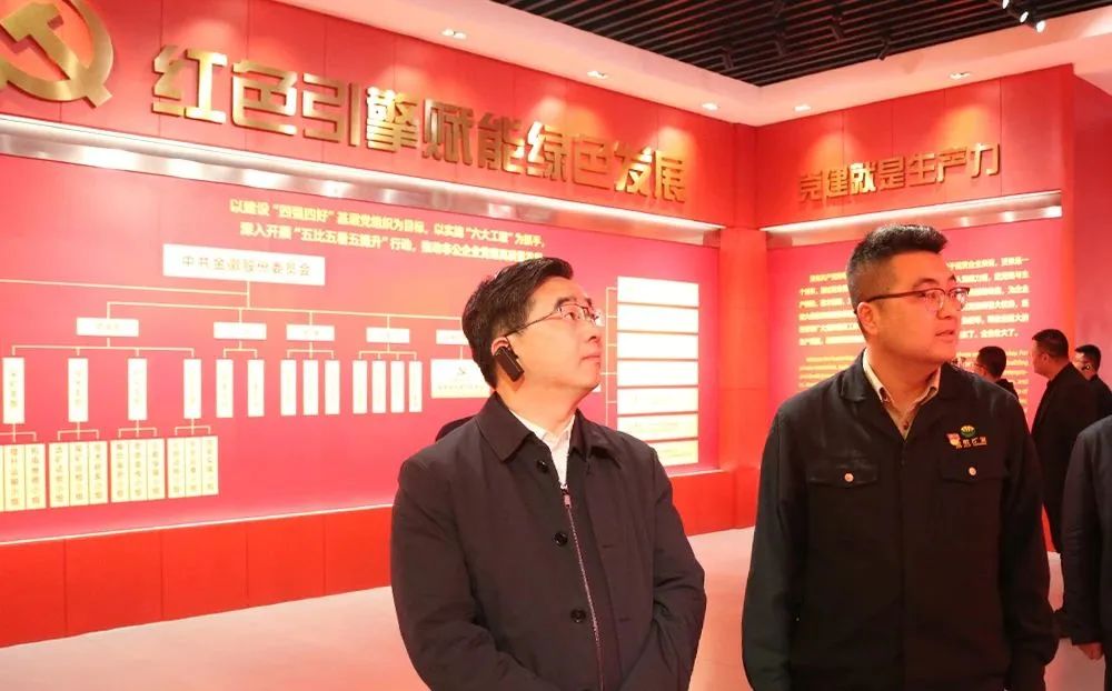 在展览馆,向清凯社长一行看到企业党建展面后表示,金徽股份作为非公企业,能高度重视党建工作十分难得,做到了把党组织的政治优势转化为企业发展优势,把党组织的活力转化为企业发展活力更是难得。