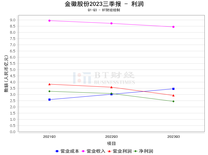 在营业情况方面,金徽股份年初至本报告期末的营业收入为8.44亿元,相比上年同期的8.72亿元有所下降。同时,营业利润也从上年同期的3.58亿元下降到本报告期末的2.92亿元。净利润更是从上年同期的3.07亿元下降到本报告期末的2.44亿元。这些数据可能反映了公司在市场环境变化和成本压力下的经营压力。