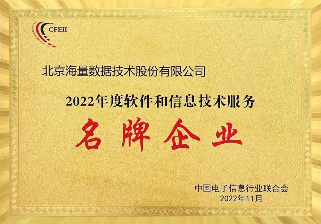 “2022年度软件和信息技术服务名牌企业“奖牌