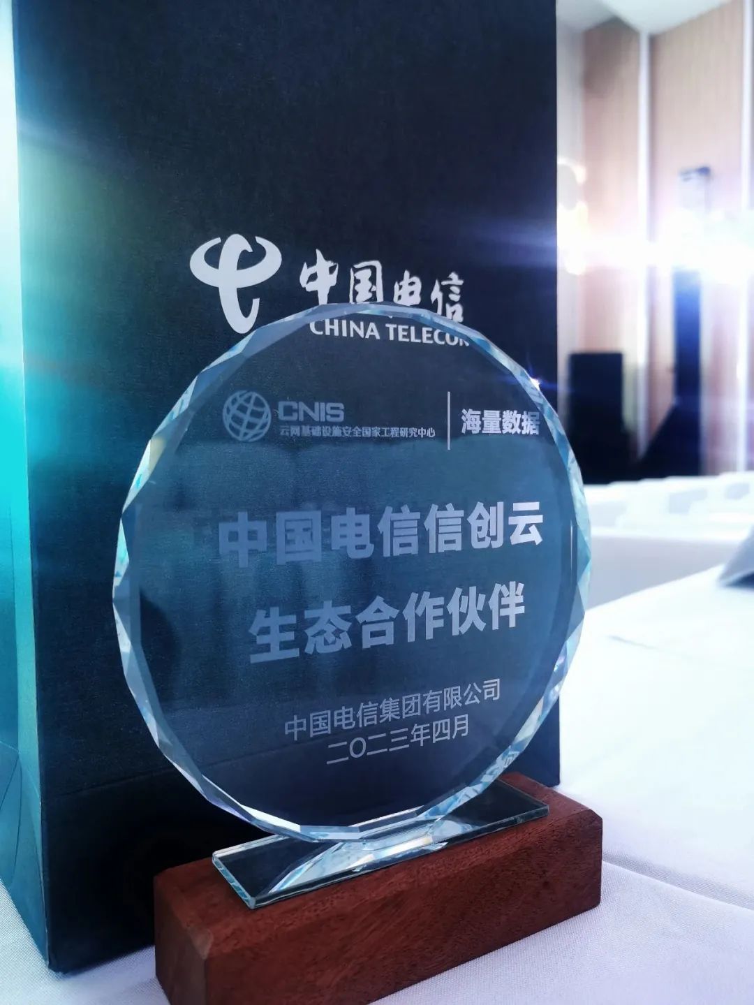 在4月27日下午的大会授牌仪式上,海量数据成功入选“中国电信云计算合作伙伴”名单并上台领奖,为进一步加强与中国电信的合作,携天翼云共同打造国产化数字建设方案奠定坚实基础。