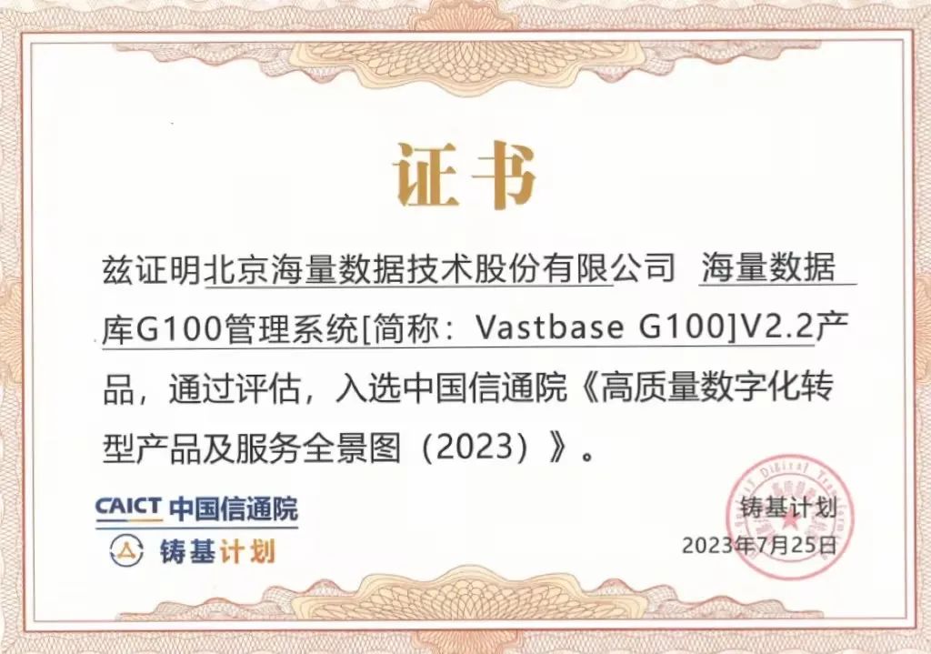 数字化转型正当时,海量数据回应时代发展需要,加速构建自主产品体系,而其中的核心产品之一,海量数据库G100管理系统,凭借极致性能和最佳应用再获行业认可,通过权威评估,成功入选中国信通院《高质量数字化转型产品及服务全景图(2023上半年度)》。