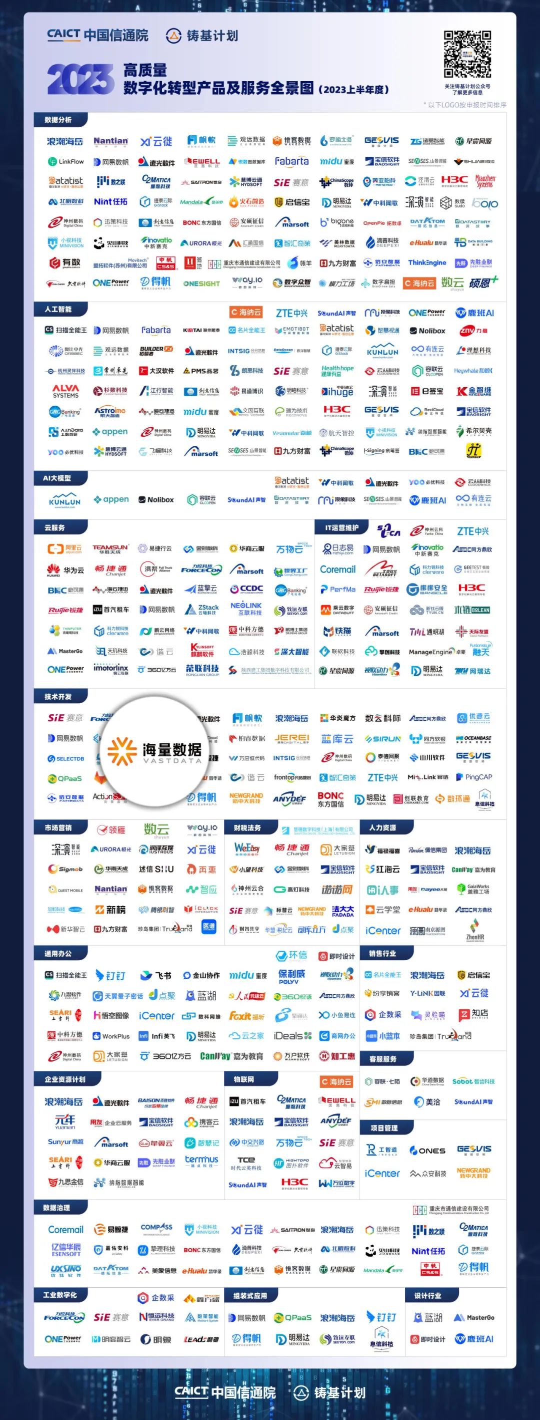 《高质量数字化转型产品及服务全景图(2023上半年度)》于近日正式发布,《全景图》作为“铸基计划”的成果之一,依托中国信通院在架构数字化、服务数字化、业务数字化、商业数字化、生态数字化的深入积累和理解,遴选一批在基础能力、性能、安全、自研能力等方面表现突出的产品案例。