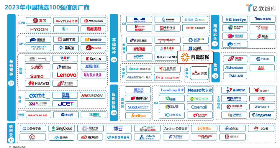 近日,国内一流创新型产业信息平台亿欧智库经过对上万家信创企业进行持续观察和研究,权威发布《2023信创产业新发展趋势报告及100强》。海量数据凭借在技术路线、研发投入、专利著作、产品性能、生态数量、落地表现等全方位的突出表现,成功入选“中国精选100强信创厂商”,并成为中国信创产业图谱的重要一环。