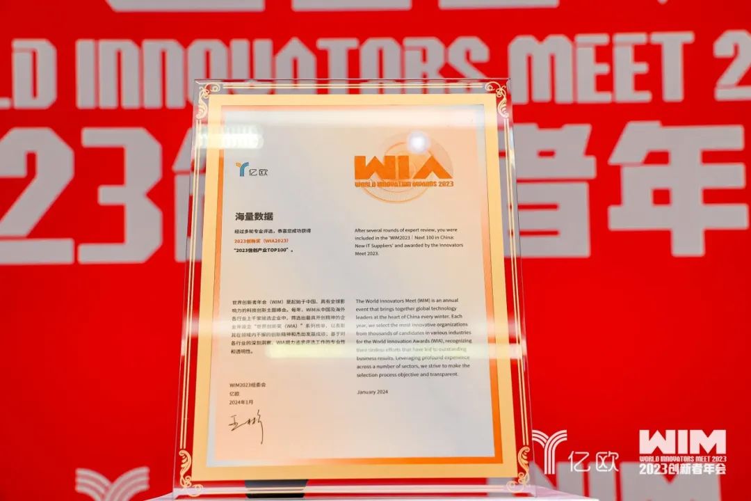 1月17日,中国产业发展促进会、中关村国家自主创新示范区展示中心指导,亿欧智库主办的2023年世界创新者年会在北京举办。论坛现场为2023年中国精选100强信创厂商隆重颁发证书,同时,海量数据再获殊荣,收获“2023年创新奖(WIA2023)”认可。