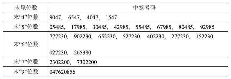 回拨机制启动后,网上发行最终中签率为0.04892108%。中签号码共有49,500个。